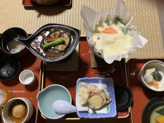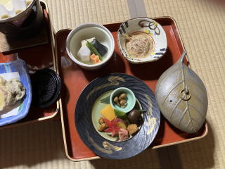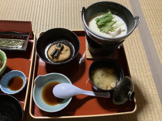 夕食は精進料理でした。肉類は全く使っていませんでした。さすがにご時世でしょう、お酒はOKでした。