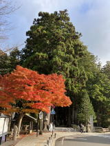 バス停からは少し戻る形になります。途中の参道の脇に見事な紅葉がありました。