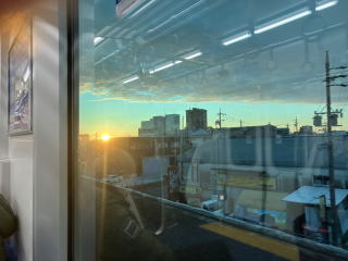 名古屋駅に向かう電車の車窓から日の出が見られました。今日は天気は良さそうです。
