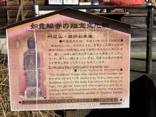 薬師如来のはずです。堂内を拝観できませんでしたが、行基作の薬師如来像なら約1300年前の物、