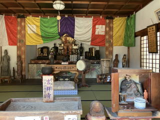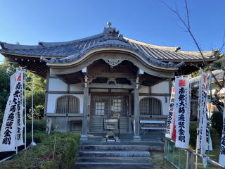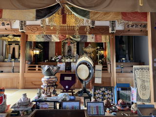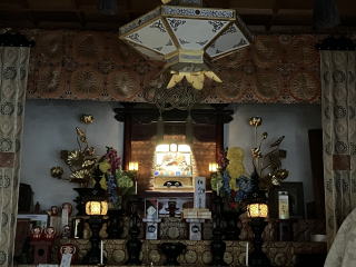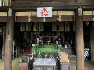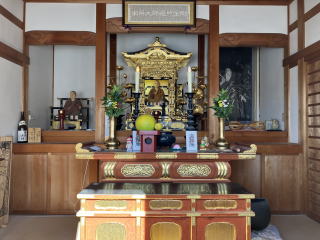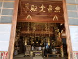 弘法堂の先に建つ方三間寄棟造の建物が本堂で、扁額に「瑠璃光」と記載があり、本尊が行基作の