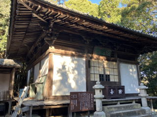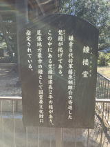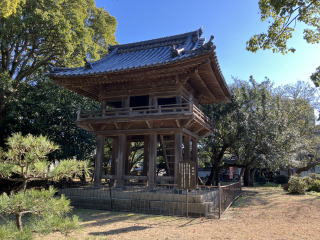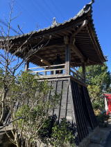 弘法堂の前に鐘楼があります。かなり簡素な感じの建物の上、「慰源義朝公霊」と書かれた看板が