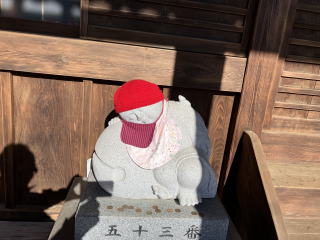 縁に賓頭盧長者の像が置かれていました。しっかり撫でさせていただきました。
