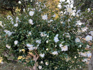 境内には白い花が咲いていました。椿です。