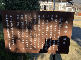 境内には、「義朝公の乳母で、鎌田兵衛政清(義朝を謀殺した長田忠致の娘婿)の母(報恩寺乳寶