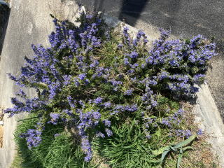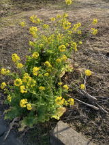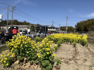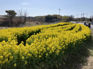 路肩に菜の花と名前はわかりませんが紫色の花が咲いていました。もう春ですね。