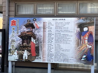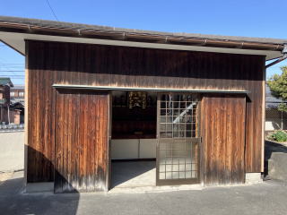 途中に見事な常滑焼きでできた壁がありました。この地域の「世楽車」という山車の倉庫もありました。