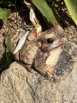その狛犬は、色は常滑焼の特徴である赤茶色というか黒っぽい茶色です。耳が垂れ、立派な口髭を