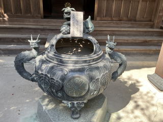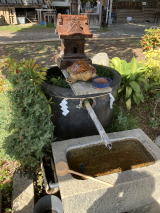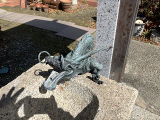 右側に屋根がなく、雨ざらしの手水桶が置かれています。吐水口の龍はなかなか凝ったものでした。