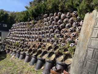 下の写真は、擁壁に20個くらいの焼き物が付けられていて、一つ一つに説明がされていました。