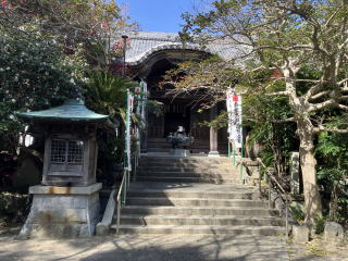 相持院の看板と石段の登り口に「新四国六十五番」の石標が立ってます。看板には「南知多七福神