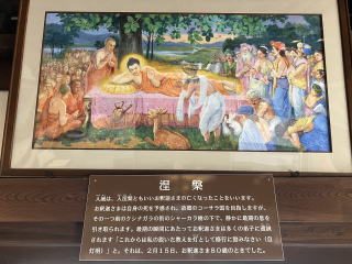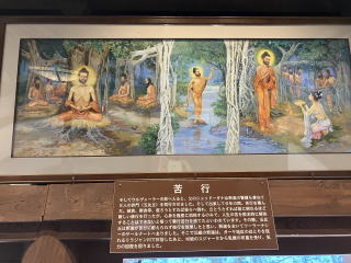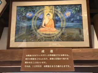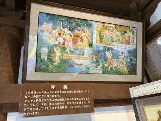 建物の中に入ると壁の4面に、十数枚のお釈迦様の一生の説明の絵が飾られていました。