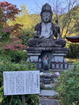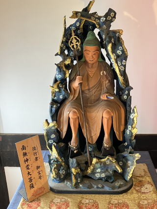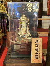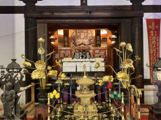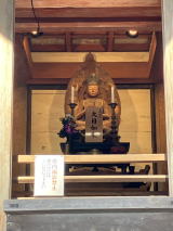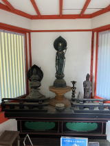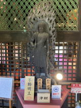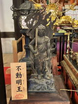 この本堂にはほかにも像が祀られています。本堂入口に不動明王の等身大の像が、御本尊の前には