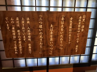こうした謂れから、盲目の夫とその開眼を祈る妻の夫婦愛物語が明治時代に作られ、人形浄瑠璃や