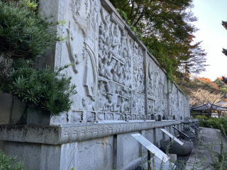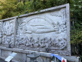 このレリーフの奥には「涅槃仏」、天竺渡来 真言八祖像」、「天竺渡来 七福神石像」などがあります。