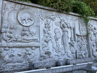 これが「天竺渡来 佛伝図レリーフ」です。高さ2m、幅は20m以上あります。お釈迦様が誕生してから