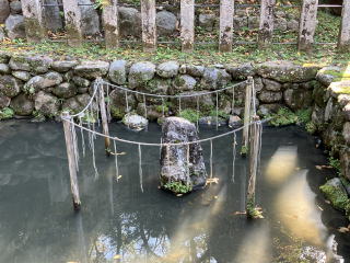 本堂の前にある池の中に立っている石が封じた石なのだそうです。
