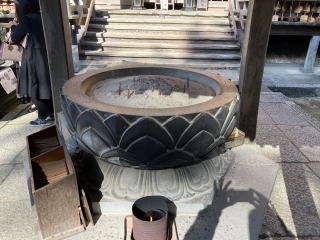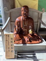 本堂前のお線香の台は見事な蓮弁型です。本堂の庇には「賓頭盧長者像」がありました。しっかり腰の