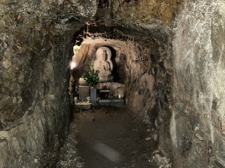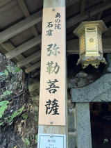 奥の院にある石窟(洞窟のような穴)の中には、弥勒菩薩(みろくぼさつ)が安置されています。