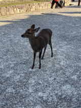 「鹿」。公園に入るとすぐに見かけました。小鹿もいてかわいいですが、鹿せんべいを持った人には