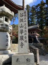 参道沿いの紅葉が見事です。ふと見ると「華厳寺まで八丁」の石柱があります。この石柱は半丁ごとに