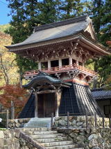さらに下ると「袴腰付きの鐘楼」があります。正面下には袴に見える唐破風が付いていて、いままで