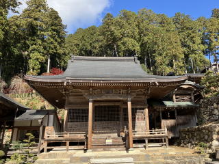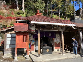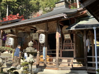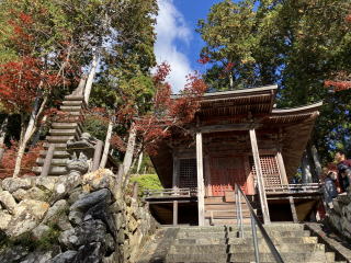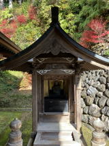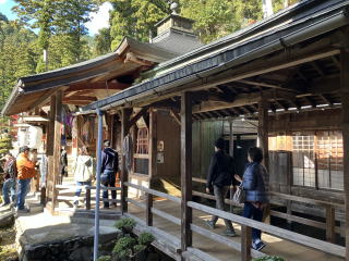 約100mほど歩くと奥の院の前を通りました。ちなみに妙法ヶ滝までは少し距離があるようなので