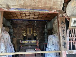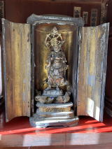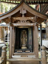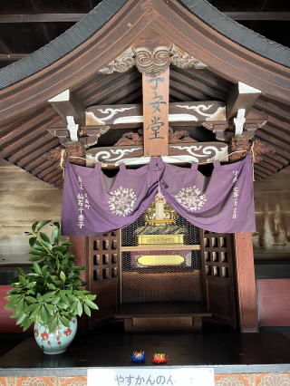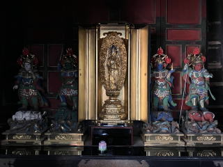 その反対側のお堂の内部にご本尊のお前立(この場合は後ろ立ち?)と四天王が祀られていました。
