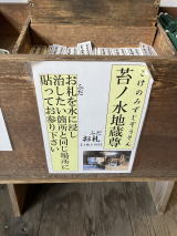 お堂のちょうど裏側に苔ノ水地蔵尊がありました。これは、1枚20円で購入した御札を水に濡らして