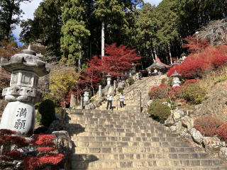 子安堂の先に進むと石段があります。三十三段あるそうで、登った先には「満願堂」があります。