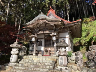 本堂の左後ろに位置しています。かつて花山法皇が笈摺と杖と三種の御詠歌を奉納されたとされて