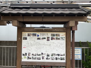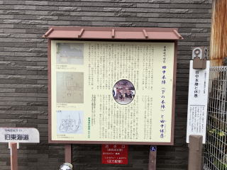 東海道五十三次の案内板や東屋、トイレなどがあります。旧東海道の宿場の意名前を記した石柱が