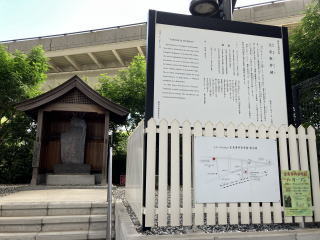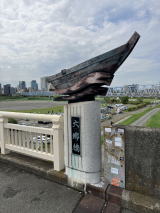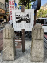 橋を渡ったところに昔の八つ山橋の親柱が保存されていました。小さな公園のように整備されていて