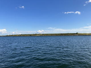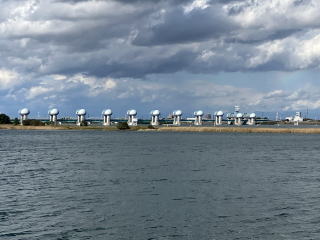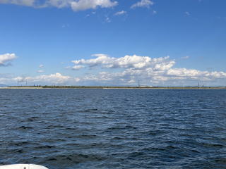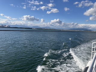 導流堤の先端を過ぎると船は左に進路を変え、東へ向かいます。左手に木曽三川(木曽川・長良川・