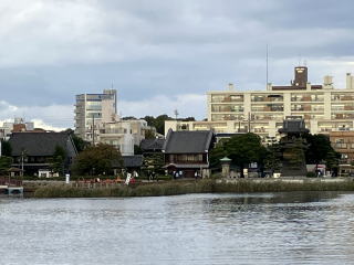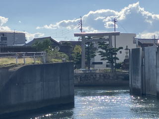七里の渡しの船着き場は一の鳥居の少し北側にある住吉神社の横でした。これから乗る船が停泊