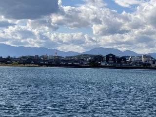 この時間は満潮なので干潟は海面下に隠れています。(船が運行するのは満潮の時間帯なので、