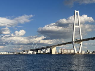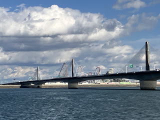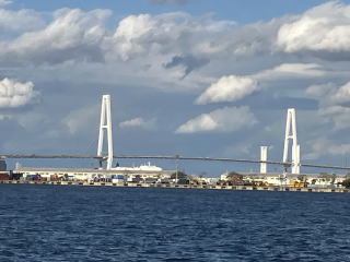 名港西大橋をくぐる