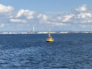 黄色いブイの所で45度ほど右に曲がります。ここから名古屋港に向かって舵を切ります。