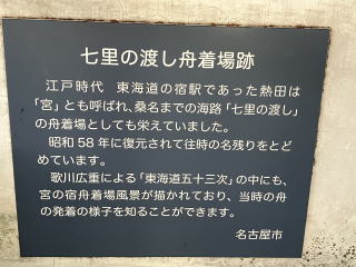 七里の渡しの説明板と歌川広重の53次熱田宿の絵がありました。今とは別世界の眺めですね。